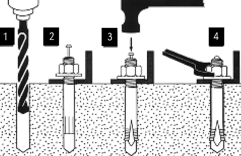 Strike Anchors zijn ontworpen om te verankeren in beton. Steek het stakingsanker in een voorgeboord gat in het beton. Zet het anker door de nagel in het anker te slaan. De nagel breidt het staking -anker in het beton uit.